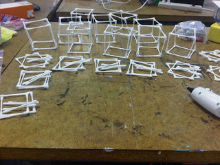 I started off by gluing the q-tips together to form cubes.